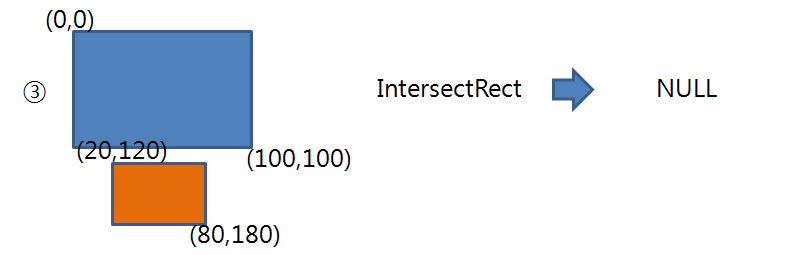 이 경우 IntersectRect 함수의 리턴값은 FALSE 이다. 즉 함수 실행이 실패하였음을 의미한다.