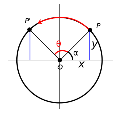 - 여기서 θ는 각도에 해당합니다. 반시계 방향으로 회전하는 방향이 + 각도가 됩니다.