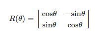 - 2D 좌표계에서 회전 변환을 할 때 사용하는 변환 행렬은 다음과 같습니다.