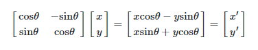 - 위 회전 행렬을 이용하여 (x,y) 좌표를 회전 변환을 하면 다음과 같습니다.